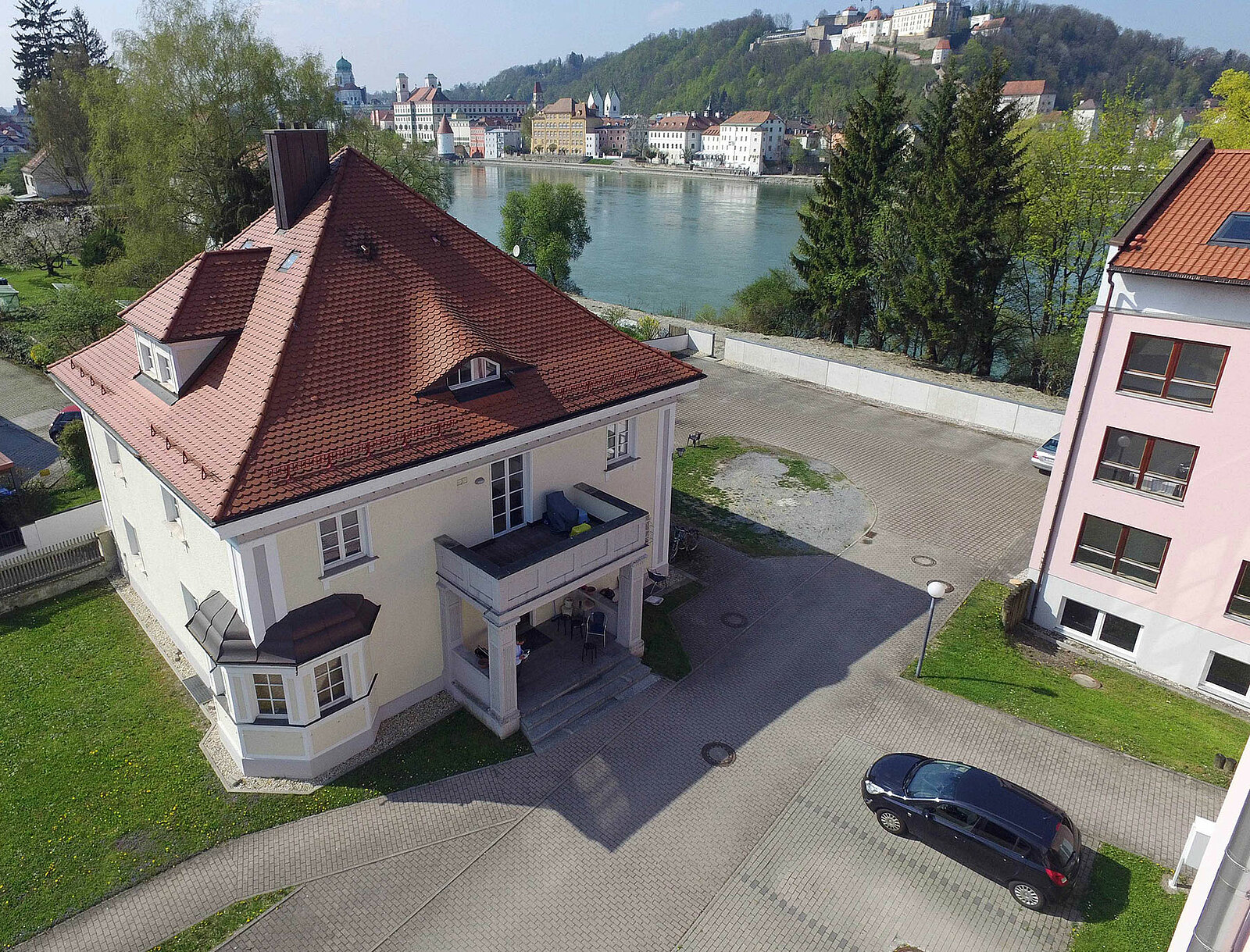 Besonderheit: ruhige Lage mit Panorama-Traumblick auf die Passauer Dreiflüsse-Stadt und doch unmittelbare Nähe zum Campus;